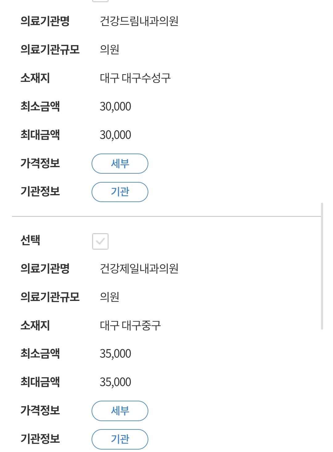 대구 독감 예방접종은 무료 대상자가 아니라면 일반병원에서 맞아야합니다. 병원마다 독감주사 비용이 달라서 조금이라도 저렴한 곳에서 하고 싶은데요, 이럴때 일일이 전화해서 비교하기 어렵습니다. 이럴때는 '건강e음'앱에서 확인할수 있습니다. 앱 다운로드부터 30초만에 내 주변 최저가 병원 찾기 완성!
